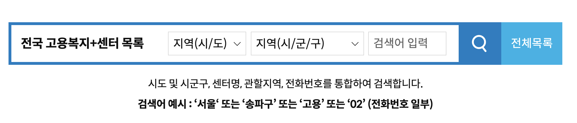 | 울산고용복지+센터 | 남구,동구,북구,울주군,중구 | 바로가기 |